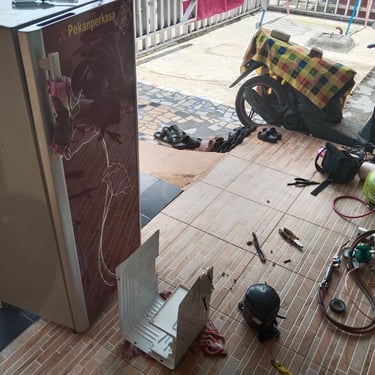 Melalui gambar gambar berikut Anda dapat melihat proses perbaikan kulkas satu pintu dua pintu freezer hingga showcase di rumah maupun tempat usaha pelanggan di seluruh wilayah Pekanbaru. Semua layanan dilakukan oleh teknisi berpengalaman menggunakan alat kerja modern dan suku cadang asli untuk memastikan kualitas dan daya tahan kulkas Anda kembali optimal.