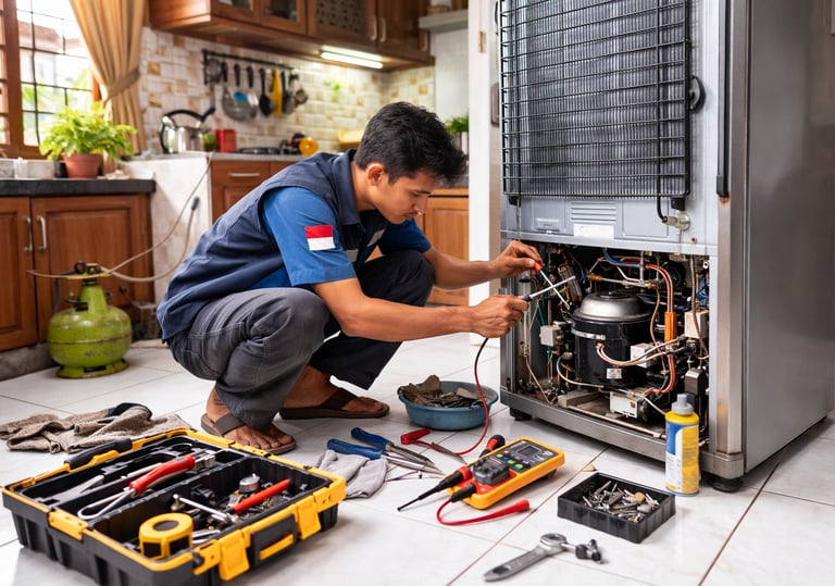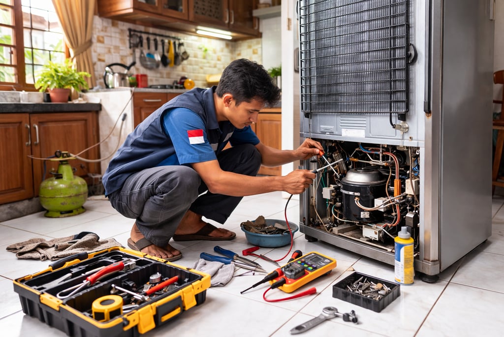 Spesialis perbaikan kulkas berbagai jenis dengan layanan teknisi ahli, suku cadang berkualitas, dan garansi resmi untuk warga Kecamatan Sail, Pekanbaru.